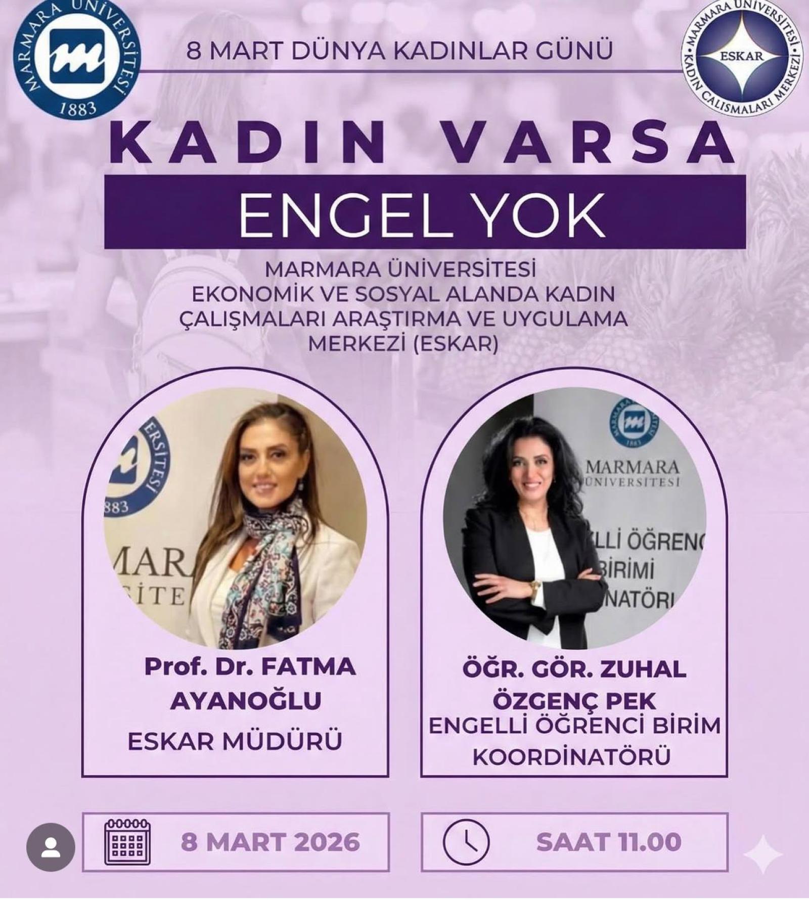 Üniversitemiz Ekonomik ve Sosyal Alanda Kadın Araştırmaları ve Uygulama Merkezi, 8 Mart Dünya Emekçi Kadınlar Günü dolayısıyla kadınların ekonomik ve sosyal alandaki gücüne dikkat çekmek amacıyla, engelli kadınları odağına alan bir söyleşi gerçekleştirdi.